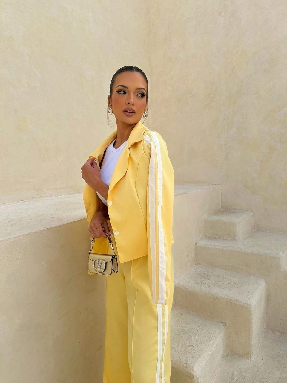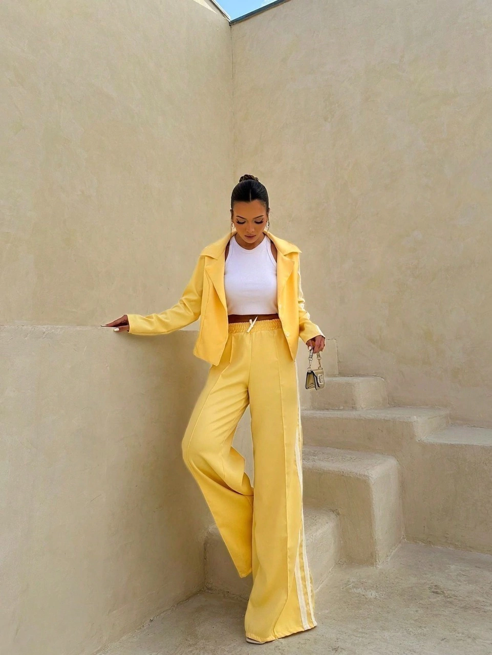 Conjunto Versátil: Perfeito para eventos formais, reuniões de trabalho ou até mesmo um jantar especial. A calça e o cropped podem ser usados juntos ou separados, proporcionando várias opções de looks.