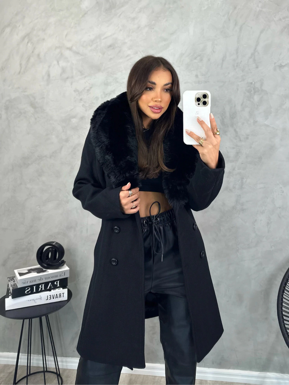 Com sua gola peluciada, esta jaqueta oferece um toque de luxo e conforto, mantendo-o aquecido durante toda a estação. O design clássico e versátil torna fácil combinar esta peça com uma variedade de roupas, desde jeans até vestidos. Seja para uma caminhada no parque ou um encontro casual, esta jaqueta será sua companheira confiável para os dias frios.